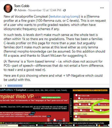 The Lextutor Facebook announcement of this work in Nov 2020 provides a good description: